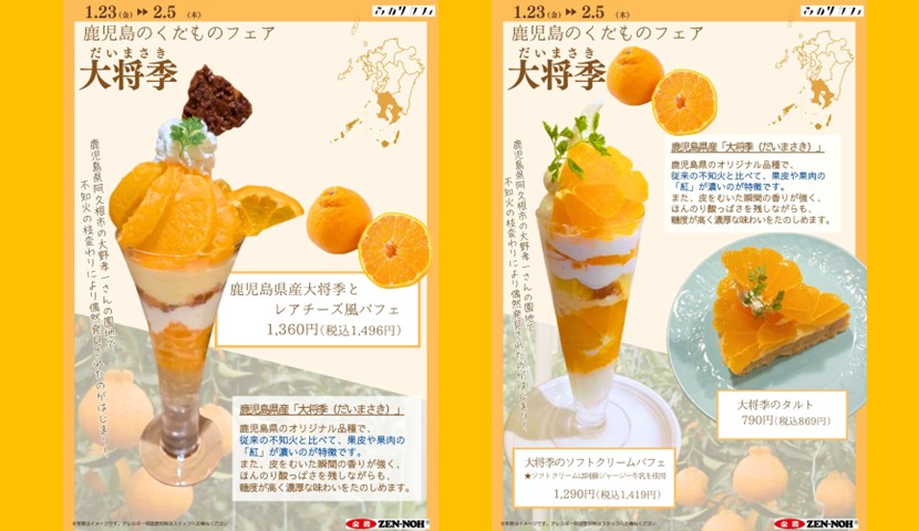 かごしまブランド産品で,鹿児島県のオリジナル品種である「大将季」をPRするため,福岡市内のJA全農直営「みのりカフェ」2店舗で,鹿児島のくだものフェア第二弾として「大将季フェア」を開催します。