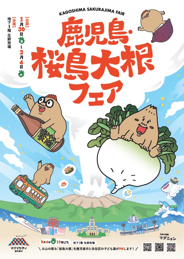 また、2月4日(水)17時頃には桜島の桜峰小学校や渋谷区の神南小学校の児童が桜島大根の店頭販売を実施します!