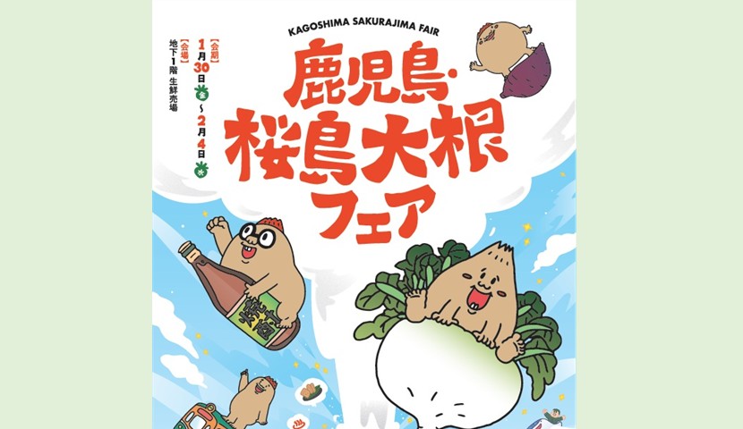 新宿髙島屋(渋谷区千駄ヶ谷5丁目24番2)では、1月30日(金)から2月4日(水)までの6日間「鹿児島・桜島大根フェア」が開催されます。