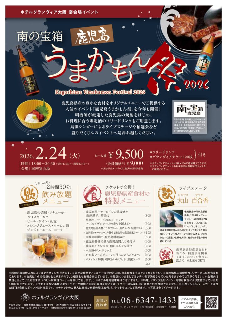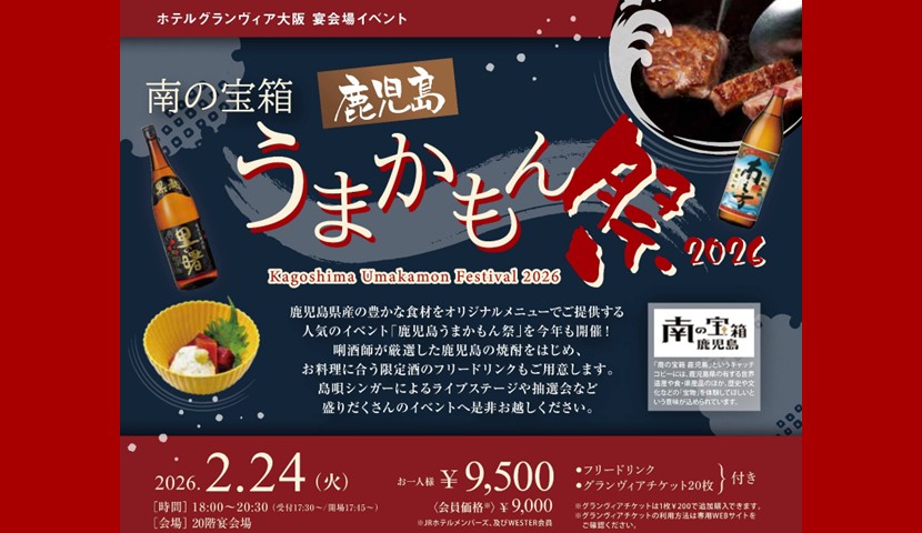 ホテルグランヴィア大阪の冬の人気イベント「南の宝箱 鹿児島うまかもん祭2026」が開催されます。