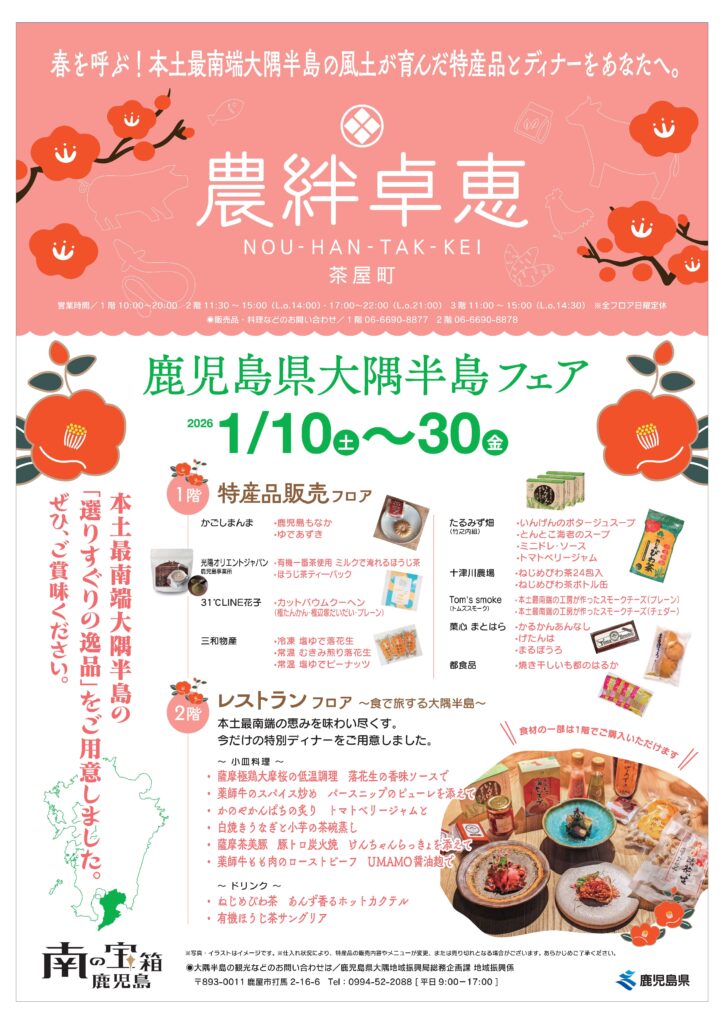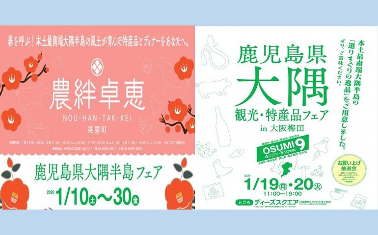 大隅地域をPRするイベント(鹿児島県大隅半島フェア,鹿児島県大隅観光・特産品フェア in 大阪梅田)を開催します!【大阪】