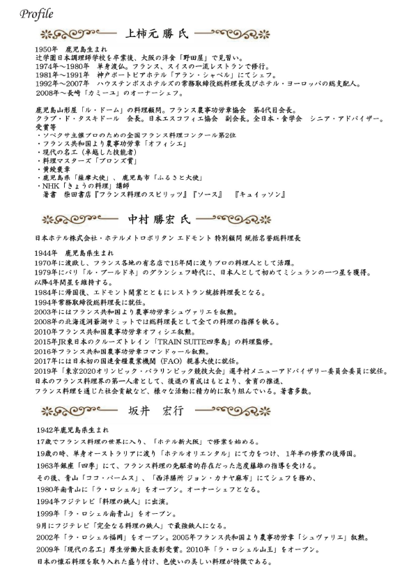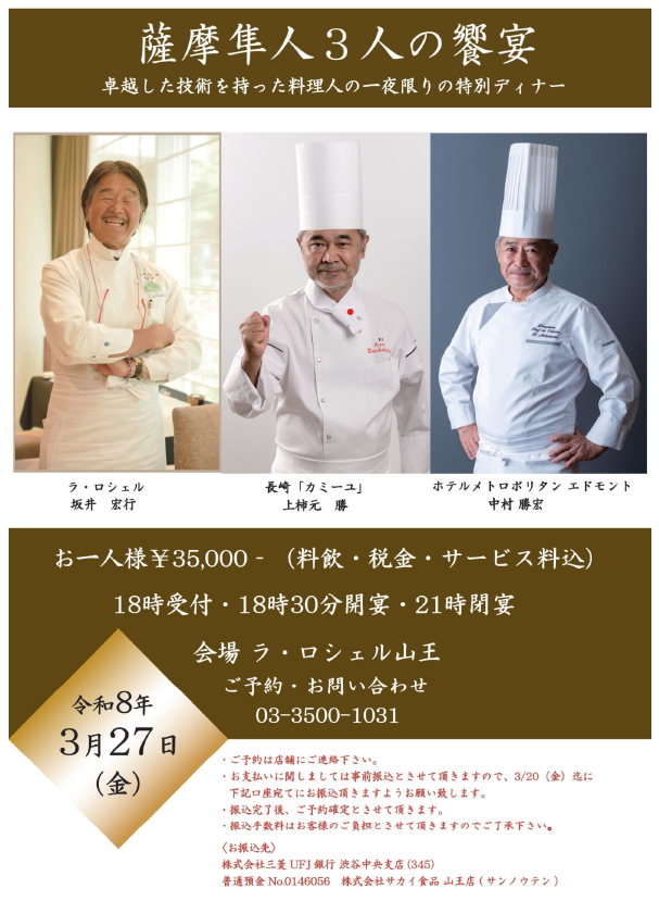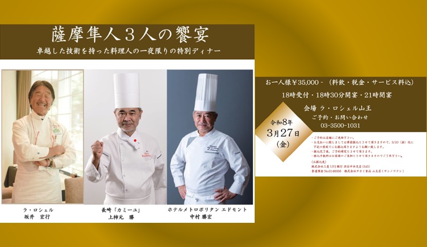 日本フランス料理界を代表する三人の薩摩隼人が,一夜限りで集います。