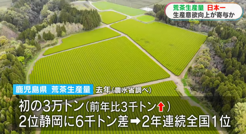 鹿児島県が、お茶の一次加工品である「荒茶(あらちゃ)」の生産量において、2年連続で全国1位に輝きました。昨年の生産量は、前年比で3,000トン増加。県として初めて大台となる3万トンに到達し、その存在感を強めています。